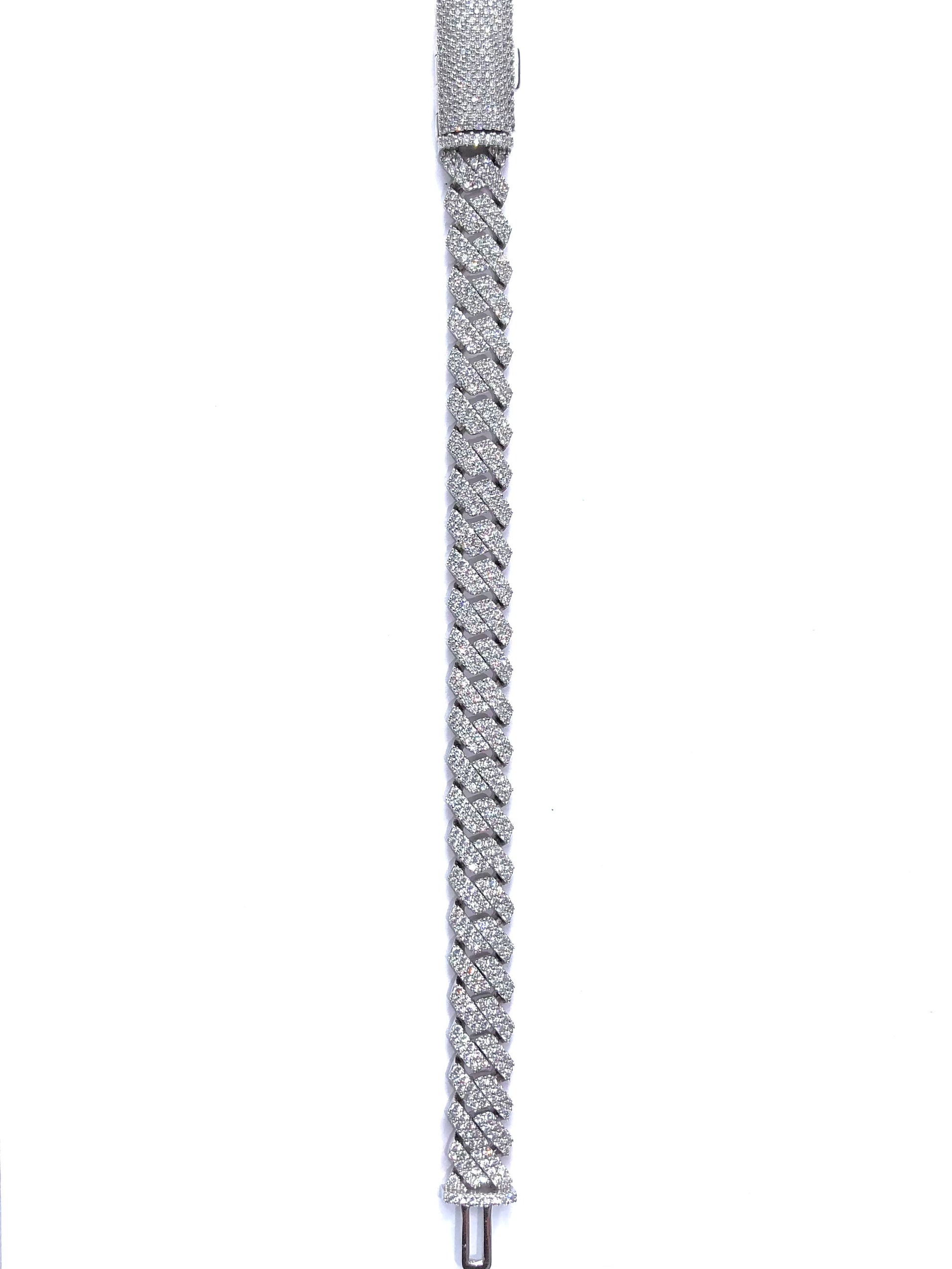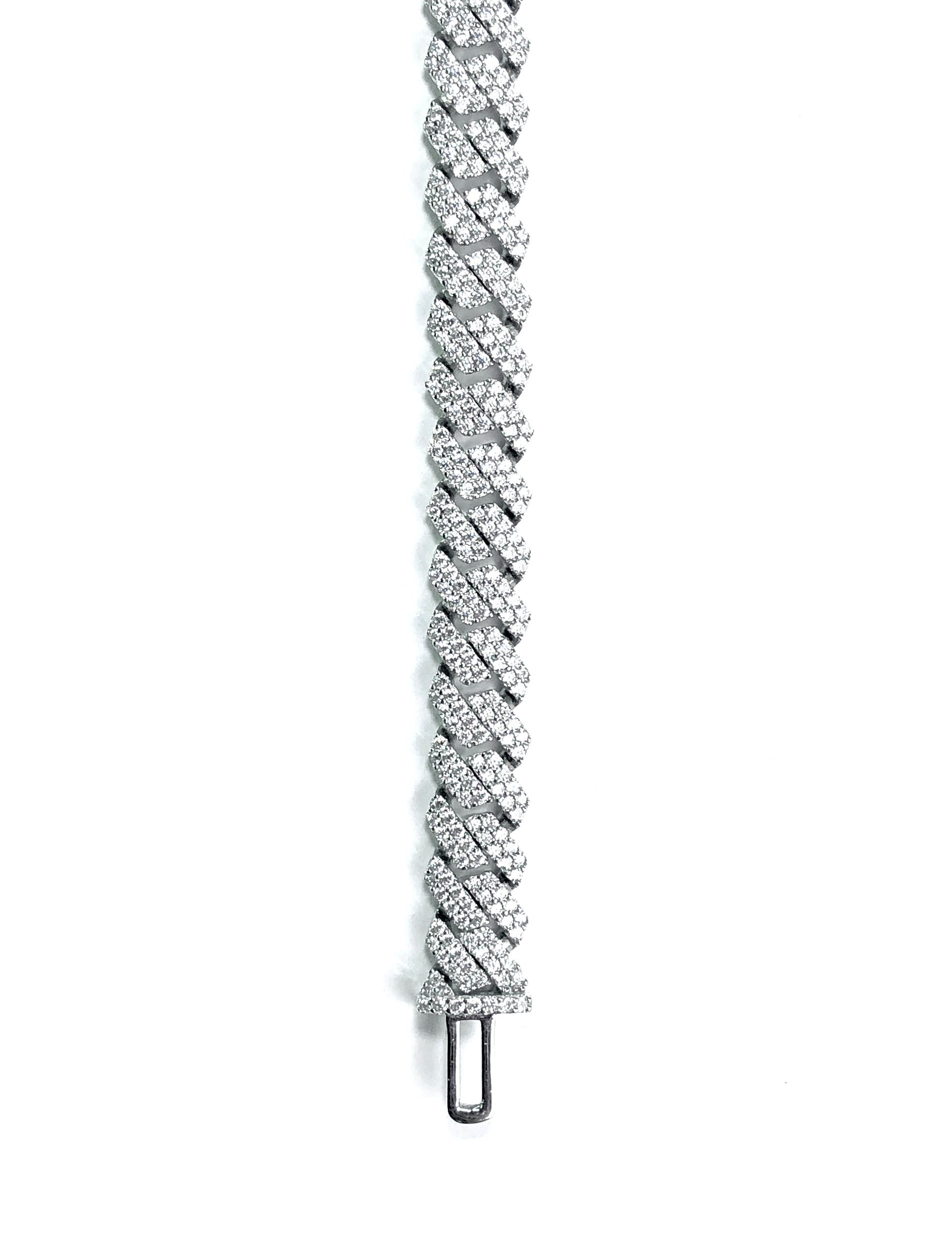 TENNESSI's Slant Cuban Bracelet with prong stone setting. Handset stones in glazing silver, offering a classic but unique look, with perfect detailing. Available for customization.