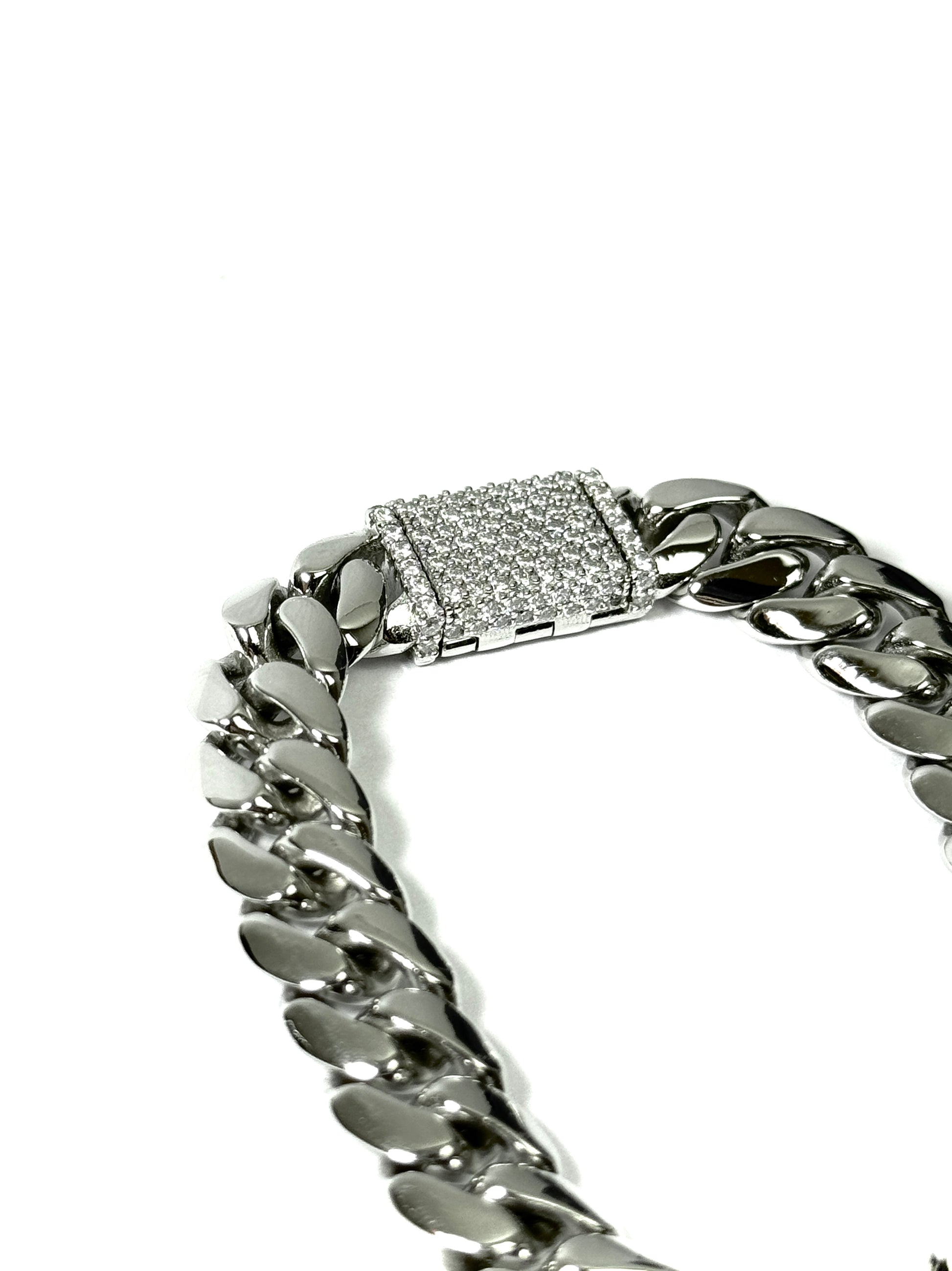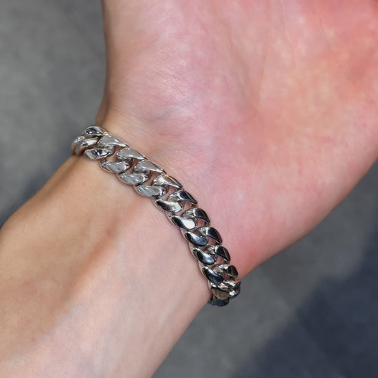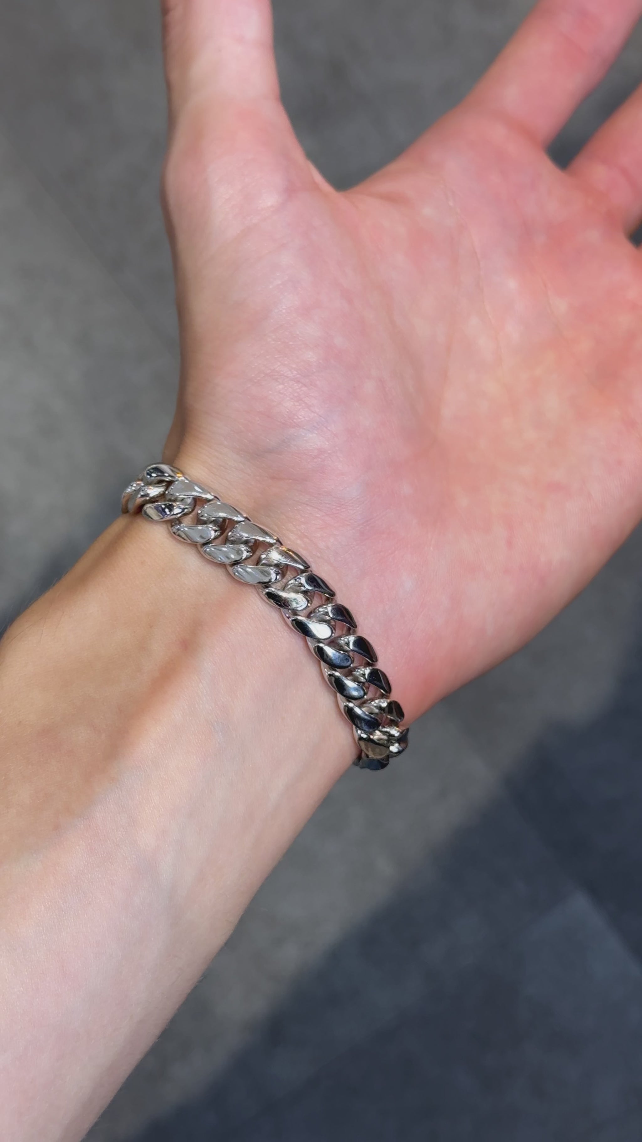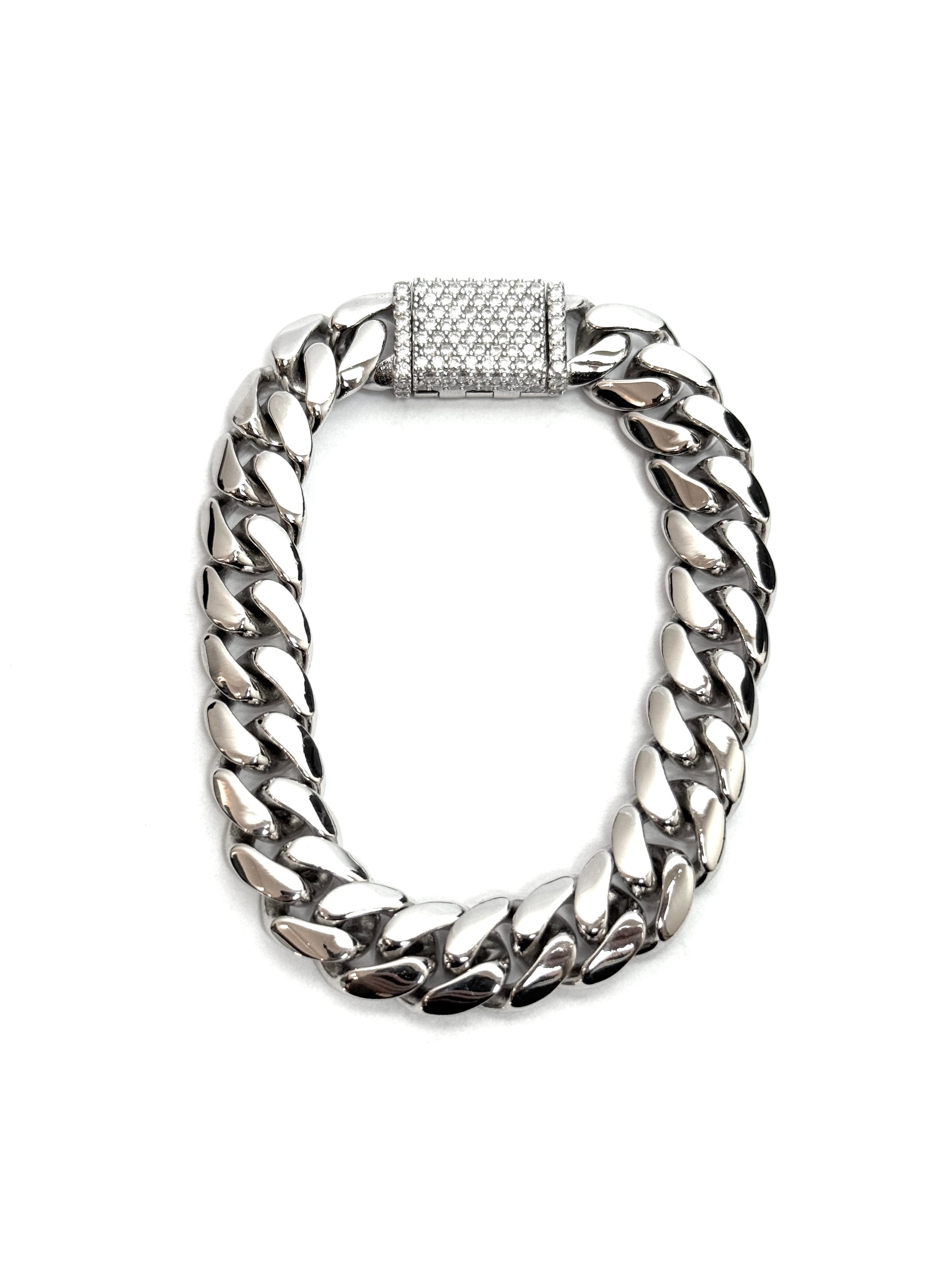 TENNESSI's Miami Cuban Bracelet. Featuring tight, welded links with a custom sleek lock, set with moissanite stones. Also available with lab-diamond.